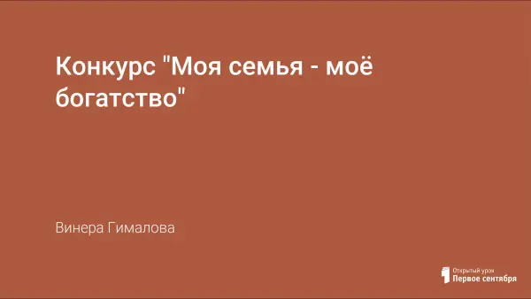 Конкурс "Моя семья - мое богатство" проводится по номинациям: "Семейная фотография", "Семейная традиция", "Мои увлечения", "Моя родословная". Жюри учитывает при оценивании результата конкурсов оформление стендов, выставку "Умелые руки", выставку блюд. Между конкурсами включаются концертные номера с участием членов танцевального кружка и песни.
