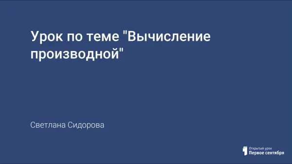 Урок по теме "Вычисление производной" предназначен для проведения в группах I курса профессиональных училищ. Групповая форма работы, используемая на уроке, позволяет не только достичь главной цели урока - формирование умений и навыков вычисления производных, но и каждому обучающемуся получить удовлетворительную оценку на уроке.