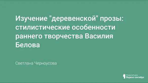 В 2007 году исполняется 75 лет Василию Белову - знаменитому писателю современности, творчество которого - неотъемлемая часть наследия "деревенской" прозы. Язык произведений наполнялся эмоциональным порывом народного слова, его колоритом. Ценилась особая иллюзия достоверности жизни, якобы освобождённой от присутствия автора. Подобная стилевая ситуация, сохраняющая естественный контакт языка художественного текста и разговорной речи, свойственна ранней прозе Василия Белова.
