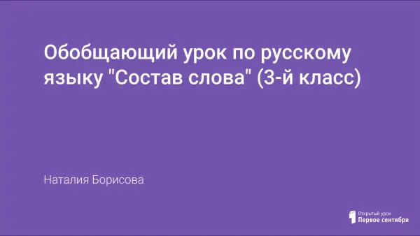 Урок русского языка разработан по программе «Школа России». Содержание материала направлено на повторение и обобщение знаний о составе слова. Разнообразие приёмов помогло провести правильное закрепление и дать возможность детям самостоятельно и без ошибок выполнить задание. Создание на уроке проблемных ситуаций активизирует мыслительную деятельность учащихся, пробуждает их познавательные способности.