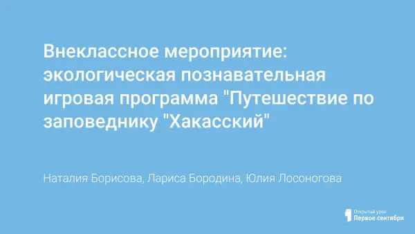Приоритетным направлением работы школы является внедрение в учебный процесс краевого регионального компонента. Данное внеклассное мероприятие разрабатывалось с целью экологического, эстетического и нравственного воспитания подрастающего поколения. Задачами игровой программы является развитие восприятия учащимися в качестве малой родины - республики Хакасия; воспитания чувства уважения к своему народу, к родной земле, а также привлечение учащихся к сохранению традиций национальной культуры народов России и Хакасии.
