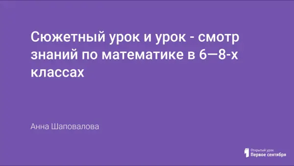1. Сюжетный урок для 6-го класса по теме "Совместные действия с обыкновенными и десятичными дробями". Цель урока - развитие ителлектуальных навыков учащихся. Урок насыщен заданиями в игровой форме на основе исторических фактов. Возможно применение технических средств обучения. Урок-смотр знаний по алгебре в 8-м классе по теме "Квадратные уравнения". Урок включает повторение теоретического материала и решение задач по всем разделам темы. Применены различные формы работы с учащимися: зачет, игра, самостоятельная работа.