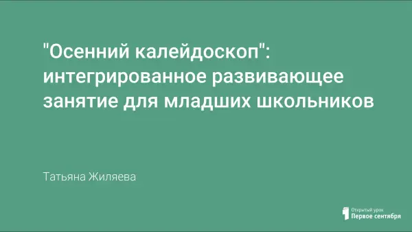 Интегрированное развивающее занятие "Осенний калейдоскоп" для младших школьников позволяет расширить и закрепить знания детей об осени, способствует активизации мыслительной деятельности, учит детей проводить своё свободное время интересно и продуктивно. Композиционно в структуре занятия три части: финал конкурса чтецов "Осенние строки", викторина, "Кулинарный поединок", результатом которого становится "сладкий стол".