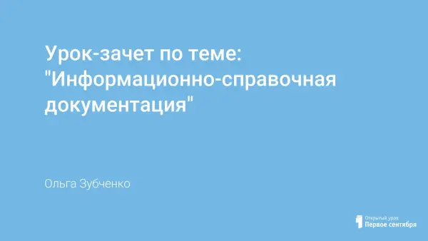 Урок-зачёт по теме "Информационно-справочная документация" соответствует учебной программе курса "Делопроизводство". Используя разнообразные активные методы обучения, формируем первоначальные представления, знания и навыки в области секретарской службы и делопроизводства.