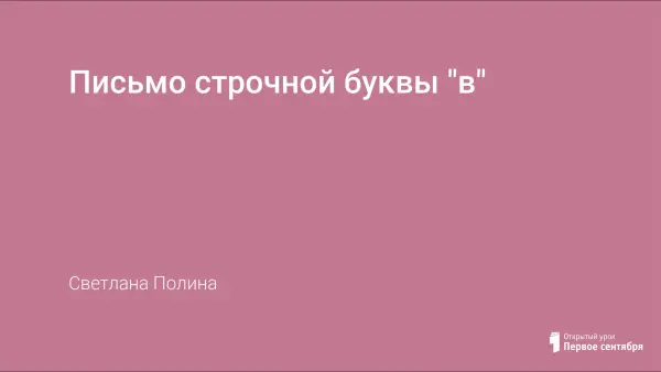Урок проводится в 1-й четверти с опорой на тетради по письму (авторы Н.В. Нечаева, Н.К. Булычева). Цель урока: научить писать строчную букву "в" и соединения с ней других букв, развивать образную память, умение управлять своими двигательными действиями, выработка навыка фонетического разбора слова.