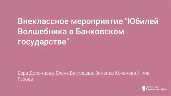 Сценарий внеклассного мероприятия для начальных классов "Юбилей Волшебника в Банковском государстве" направлен на совместное сотрудничество семьи и школы, развивает творческие способности детей, любознательность, познавательный интерес к учебным дисциплинам.