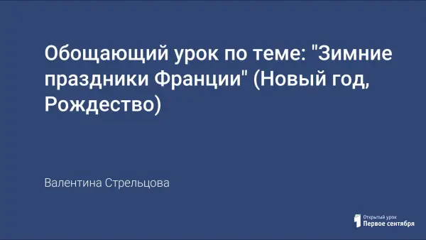 Обобщающий урок "Зимние праздники Франции" для обучающихся 7-го класса, при изучении французского языка как второго иностранного, с началом обучения в пятом классе, при наличии двух часов занятий в неделю. Учебное пособие "L'oiseau bleu-7", авторы: Н.А. Селиванова, А.Ю. Шашурина, раздел "Ah! Vous dirai-je, maman!.."