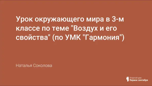 Представлен колнспект урока окружающего мира в 3-м классе по УМК "Гармония" по теме: "Воздух и его свойства".