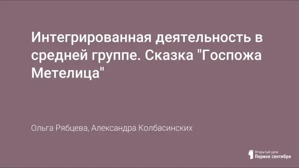 Интегрированная деятельность в средней группе. Сказка "Госпожа Метелица"