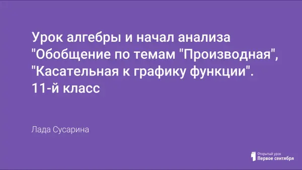 Представленный урок - урок систематизации ЗУН по темам "Производная", "Касательная к графику функции". Самостоятельная работа, организуемая с учащимися в течение урока, дает представление, насколько глубоко усвоены алгоритмы нахождения производных функций, решения уравнений вида f '(x)= 0, написания уравнений касательных к графикам функций, а также учит учеников воспитывать у себя силу воли и целеустремленность при решении сложных заданий.