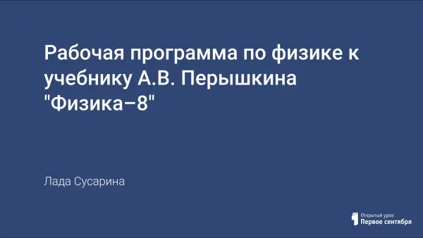Настоящая рабочая программа по физике для 8-го класса разработана на основе Программы для общеобразовательных учреждений «Физика. 7–11 кл» МО РФ (М.: Дрофа, 2005); авторской программы А.В. Перышкина. Календарно-тематический план ориентирован на использование учебника: «Физика 8 класс», Перышкин А.В. (М., Дрофа, 2009), а также дополнительных пособий.