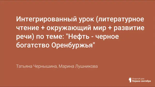 Интегрированный урок (литературное чтение + окружающий мир + развитие речи) по теме: "Нефть - черное богатство Оренбуржья"