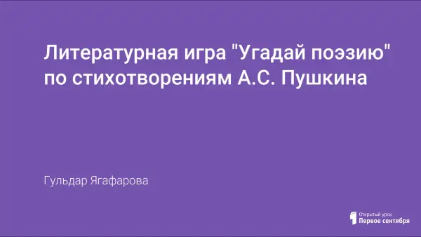 Литературная игра "Угадай поэзию" приобщает учащихся к поэзии А.С. Пушкина;