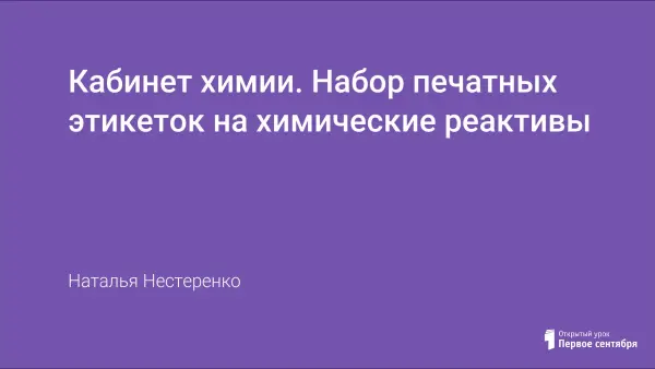 Статья содержит печатные заготовки и простые указания по созданию этикеток на химические реактивы. Представленные материалы могут быть полезными для преподавателей химии и лаборантов школьной химической лаборатории.