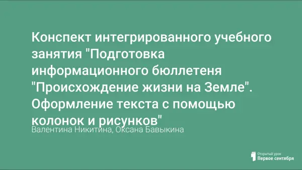 Конспект интегрированного учебного занятия "Подготовка информационного бюллетеня "Происхождение жизни на Земле". Оформление текста с помощью колонок и рисунков"