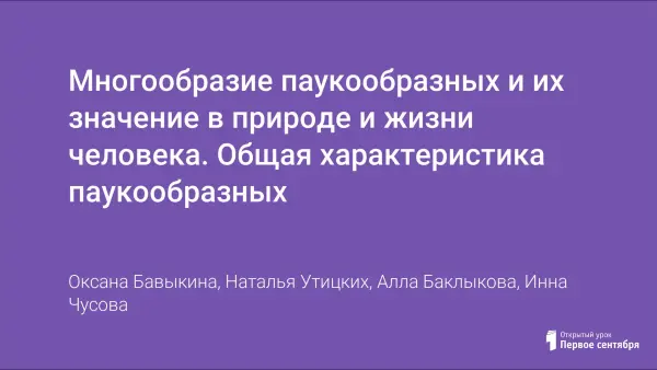 В ходе урока учащиеся знакомятся с многообразием и значением паукообразных в природе и жизни человека. Урок содержит занимательные головоломки, загадки, проблемные вопросы, биологические задачи.