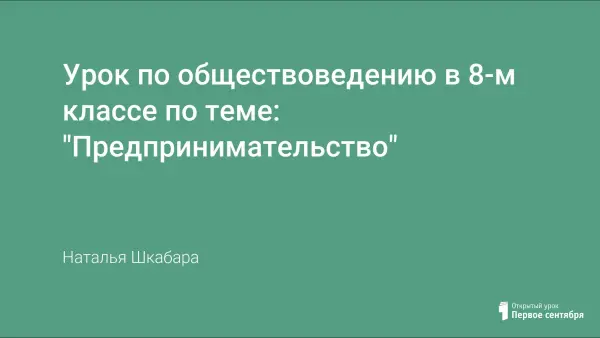 Урок "Предпринимательство" разработан для 8-го класса по курсу А.И. Кравченко "Обществознание. 8-й класс" с использованием интерактивных методов обучения. Основная деятельность на уроке - работа в малых группах. Занятие позволяет раскрыть сущность предпринимательской деятельности, моделировать поведение предпринимателя в определенной экономической среде.