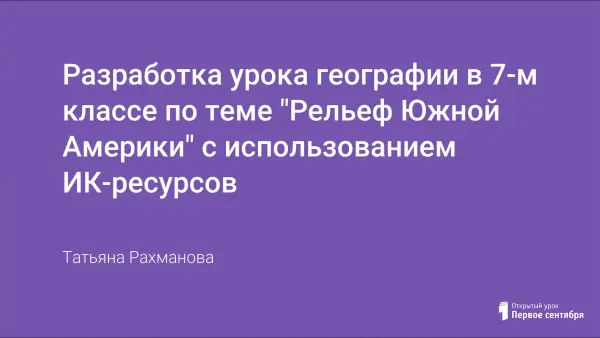 Обеспечение положительной мотивации на уроке достигается за счет применения различных форм обучения и ИК-ресурсов. На различных этапах урока использовалась презентация, созданная в программе Power Point. Слайды, демонстрирующие рельеф Южной Америки, полезные ископаемые, причины их формирования. Содержание обеспечило информационную насыщенность, способствовало активизации познавательной деятельности учащихся.