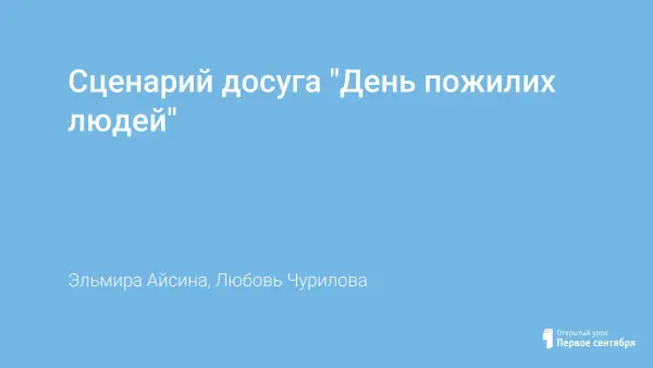 Наряду с основными праздниками, которые проводятся с воспитанниками в дошкольных учреждениях, целесообразно, на наш взгляд, проводить досуги на различные тематики. Одним из таких досугов является «День пожилых людей». Отмечать его в детском саду очень важно, ведь именно здесь закладывается начало всему прекрасному, и, в том числе, любовь и уважение к старшему поколению.