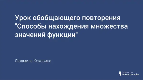 Урок обобщающего повторения проводится в 11-м классе. Задачи, связанные с поиском множества функции, не находят должного развития в рамках школьного курса математики, но регулярно предлагаются на ЕГЭ как в части А, так и в части В и С. На данном уроке рассматриваются разные способы нахождения множества значений функции.