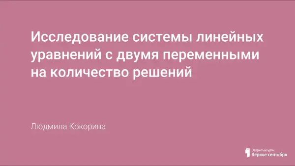 Урок алгебры в 7-м классе с целью сформировать умение по виду системы двух линейных уравнений с двумя переменными определять количество решений системы. Урок представляет собой практикум с использованием компьютерной презентации, на уроке присутствуют здоровьесберегающие моменты.