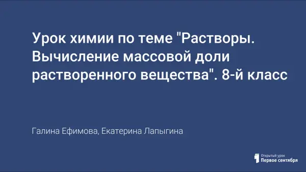 Урок химии по теме "Растворы. Вычисление массовой доли растворенного вещества". 8-й класс