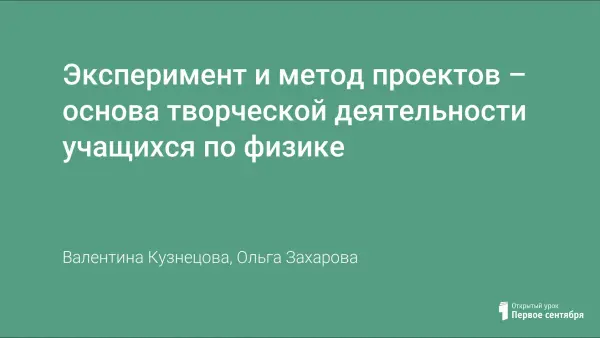 Эксперимент и метод проектов – основа творческой деятельности учащихся по физике