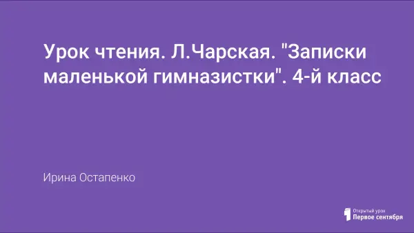 На уроке осуществляется закрепление биографии автора, знание содержания повести, знакомство с новыми произведениями Л.Чарской. Используется работа в группах с видами заданий: кроссворд о героях повести, викторина по содержанию, тест по прочитанной повести.