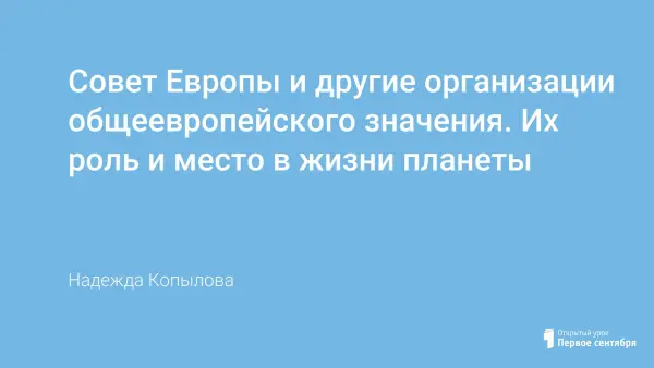 Урок направлен на закрепление и расширение знаний учащихся о европейских организациях, способствующих поиску решений глобальных проблем современной цивилизации, контролю за обеспечением прав человека, о роли и месте Совета Европы и других организаций.