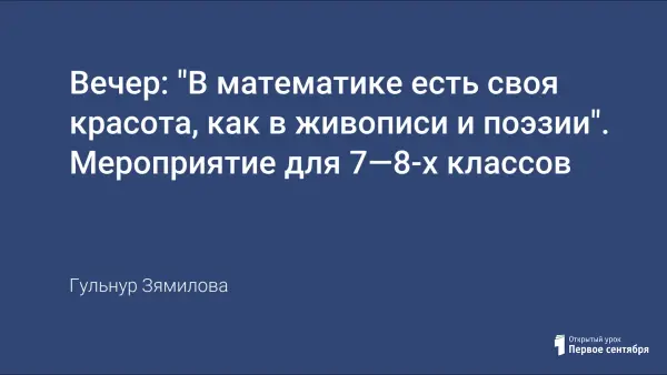 Цель вечера очевидна: показать, что математика вовсе не такая "сухая" наука, как думают некоторые, и что ею интересовались не только "чистые" математики, но и люди других профессий.