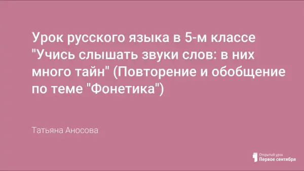 Данный урок проводится в 5-м классе во второй четверти по окончании изучения темы "Фонетика". Урок предполагает работу по фонетике, орфоэпии, синтаксису, орфографии. Используются различные формы работы: индивидуальный опрос, составление схем, сочинение миниатюр, игра "Бумеранг", транскрибирование слов, выполнение тестовых заданий.