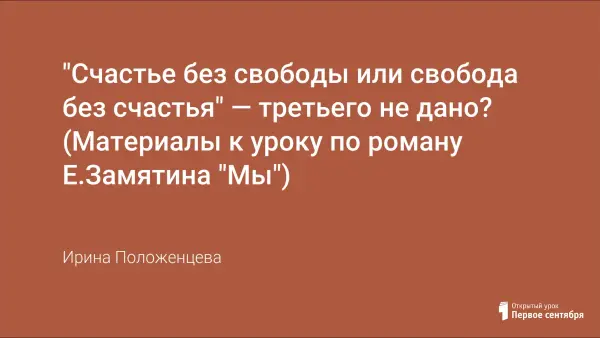 Представлен подробный план итогового урока по роману Е.Замятина «Мы». В ходе занятия ребята приводят в систему свои представления об этом произведении, развивают навык публичного выступления, культуру речи, творческие способности, размышляют над проблемами, вопросами, разрешить которые важно современному молодому человеку.