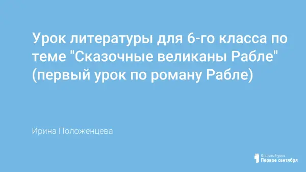 Урок знакомит учащихся с новым автором и необычным романом. Задача урока: выяснить первое впечатление от прочитанного произведения, ввести учащихся в мир романа Ф.Рабле, продолжить работу по обучению художественному пересказу, устному рассуждению по прочитанному произведению, умению быстро ориентироваться в тексте, развивать умение кратко, аргументировано отвечать на поставленные вопросы.