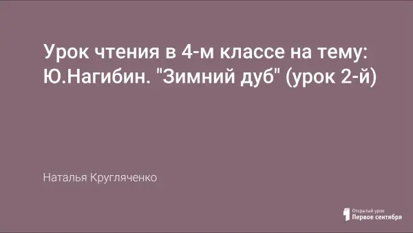 Представленный материал – второй урок чтения в 4-м классе при изучении рассказа Ю.Нагибина “Зимний дуб” (1-й – был уроком знакомства с текстом и составлением плана). На нем мы продолжаем работать над содержанием произведения, выявляя главную мысль рассказа. Таким образом происходит системаитизация знаний, ребята учатся формулировать свои эмоционально-оценочные суждения, обогащают и активизируют словарь, учатся различать виды литературных произведений.