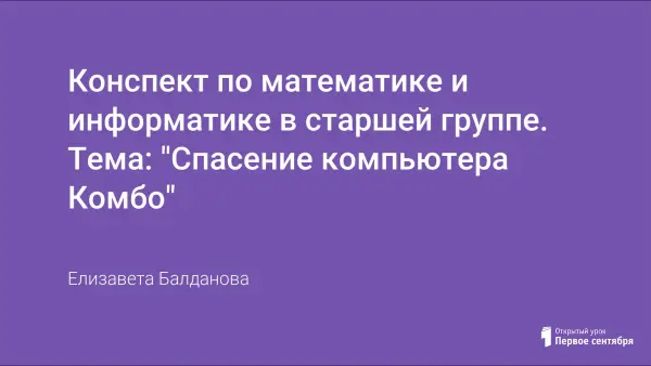Конспект занятия по математике и информатике в старшей группе. Цель: направить активность ребенка на познание, реализуемое в свободном выборе игровой и практической деятельности. Дети учатся составлять линейные алгоритмы, предметы моделирующего характера по схеме и по воображению, решают творческие задачи. Перед занятием проводятся предварительные беседы об использовании компьютера, о компьютерном вирусе.