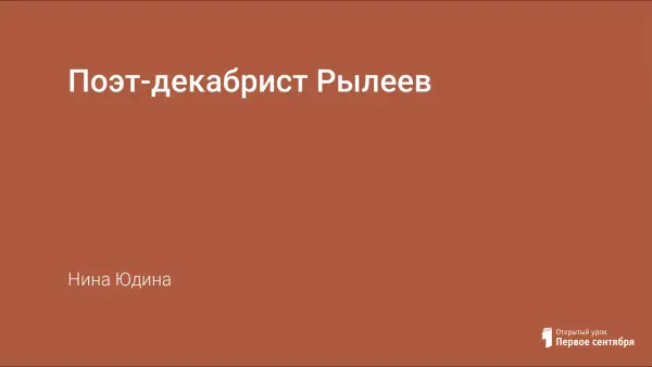 Цель данного урока - ознакомить учащихся с жизнью и творчеством К.Ф. Рылеева, отработать навыки анализа художественного текста и выразительного чтения, воспитывать такие нравственные качества, как гражданственность, патриотизм.