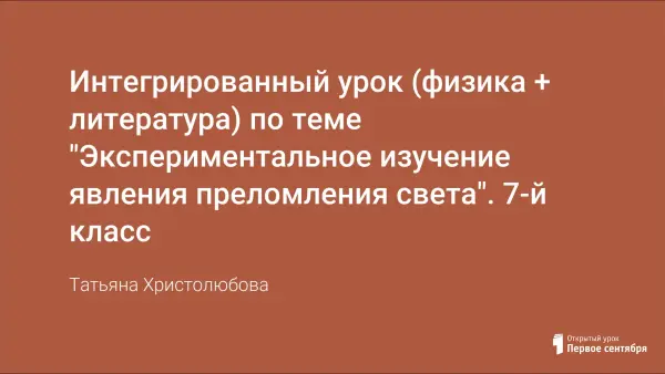 Интегрированный урок (физика + литература) по теме "Экспериментальное изучение явления преломления света". 7-й класс
