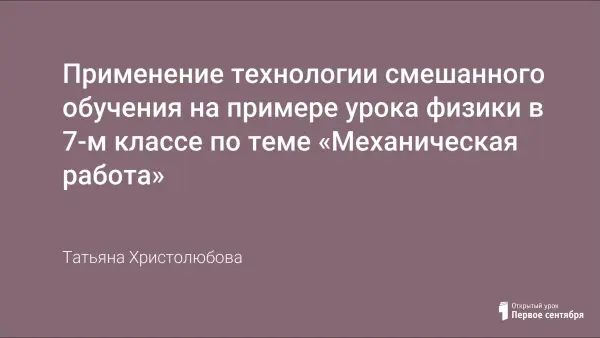 Применение технологии смешанного обучения на примере урока физики в 7-м классе по теме «Механическая работа»