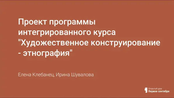 Проект программы интегрированного курса "Художественное конструирование - этнография"