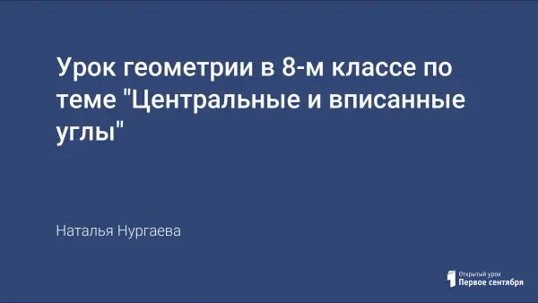 Урок геометрии в 8-м классе по теме "Центральные и вписанные углы". Целью урока является отработка навыков решения задач на применение понятий вписанного и центрального углов, на применение теоремы о вписанном угле и ее следствий; развитие способностей анализировать, проводить сопоставления, обобщать, строить доказательства, проводить наблюдения, планировать деятельность.