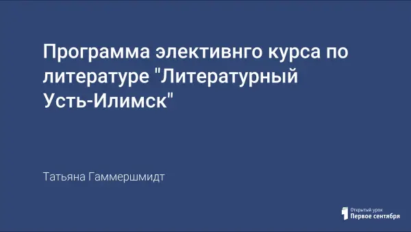 Элективный курс "Литературный Усть-Илимск" предназначен для гимназий,