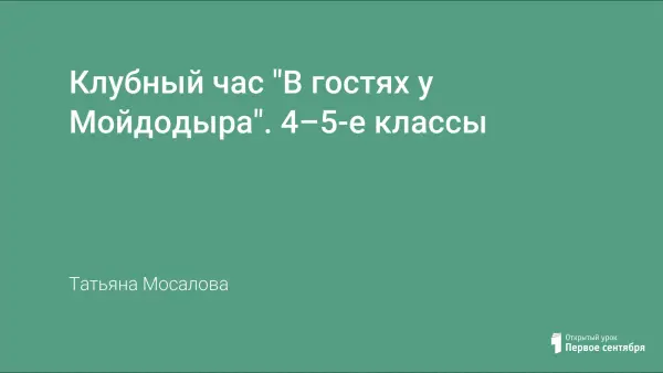Клубный час «В гостях у Мойдодыра» для учащихся 4–5-х классов – здоровьесберегающее мероприятие, которое учит детей правильно вести себя по отношению к своему здоровью; помогает детям понять, что такое «личная гигиена»; способствует воспитанию правильного поведения.