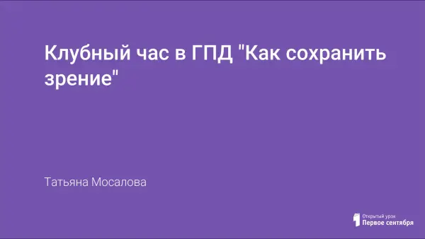 В данном конспекте клубного часа для ГПД в доступной форме с элементами игры рассматривается очень важный вопрос: как сохранить зрение. Данный вопрос актуален в настоящее время. Дети легко запоминают упражнения для глаз, правила гигиены и, вообще, весело проводят время.