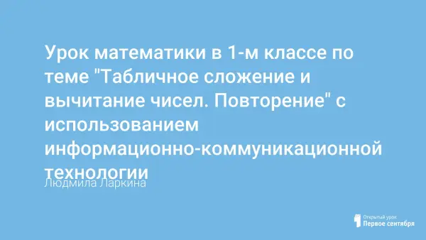 Большое внимание на уроке уделено формированию навыка вычислений вида ±1, ±2, составлению и заучиванию таблиц сложения и вычитания двух чисел, формированию умения решать задачи. Применение компьютерной презентации, структура урока способствуют развитию интереса учащихся к математике, развитию логического мышления, любознательности.