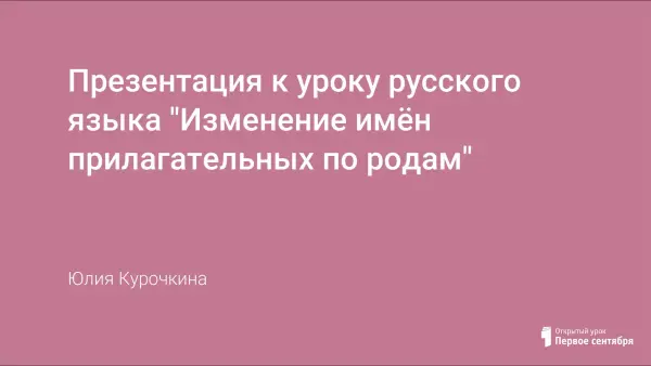 Представлена презентация к уроку русского языка по теме "Изменение имён прилагательных по родам".