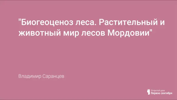Урок по экологии в 10-м классе на тему "Биогеоценоз леса. Растительный и животный мир лесов Мордовии". Целью данного урока является знакомство учащихся с биогеоценозом леса, его растительным и животным миром, воспитание чувства бережного отношения к представителям флоры и фауны. Данный урок дает характеристику типов лесов Мордовии, их состояния, значение растительного и животного мира леса для природы и жизни человека. Дана характеристика редких растений и животных лесов Мордовии.