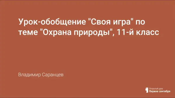 Урок-игра проводится по окончании изучения темы «Охрана природы» в 11-м классе. Урок-игра проводится с целью обобщения и систематизации знаний, учащихся по данной теме, воспитания чувств ответственности за сохранность природы.