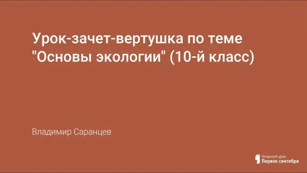 Урок-зачет проводятся после изучения школьного курса "Основы экологии" в 10-м классе. Целью данного урока является проверка качества усвоения знаний учащихся по курсу "Экология", 10-й класс.