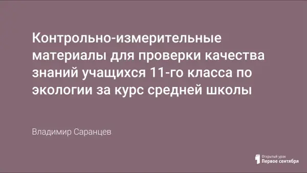 Контрольно-измерительные материалы предназначены для проверки качества знаний учащихся 11-го класса по экологии за курс средней школы. Задания составлены по аналогии с заданиями ЕГЭ (уровни А, В, С). Проверка проводится в тестовой форме, рассчитана на 90 минут.