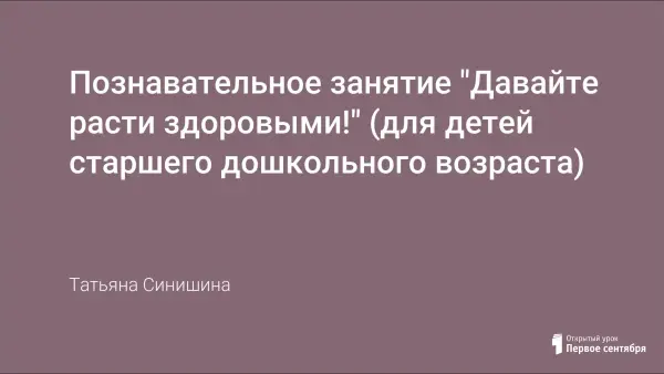 Предлагаемая разработка направлена на формирование у детей представлений о здоровом образе жизни и воспитание полезных привычек. Разработка адресована воспитателям старшей группы детского сада.